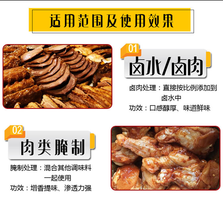 适用范围:高汤、火锅、炒菜、板面、拉面、饸饹、饺子馅、炖鱼、油泼面、鸡蛋灌饼、馅饼、砂锅米线、炖肉、馄钝、豆腐脑、鸡蛋汤、烙饼、胡辣汤、里脊扒饼、土豆粉、铁板鱿鱼、烧烤、等。