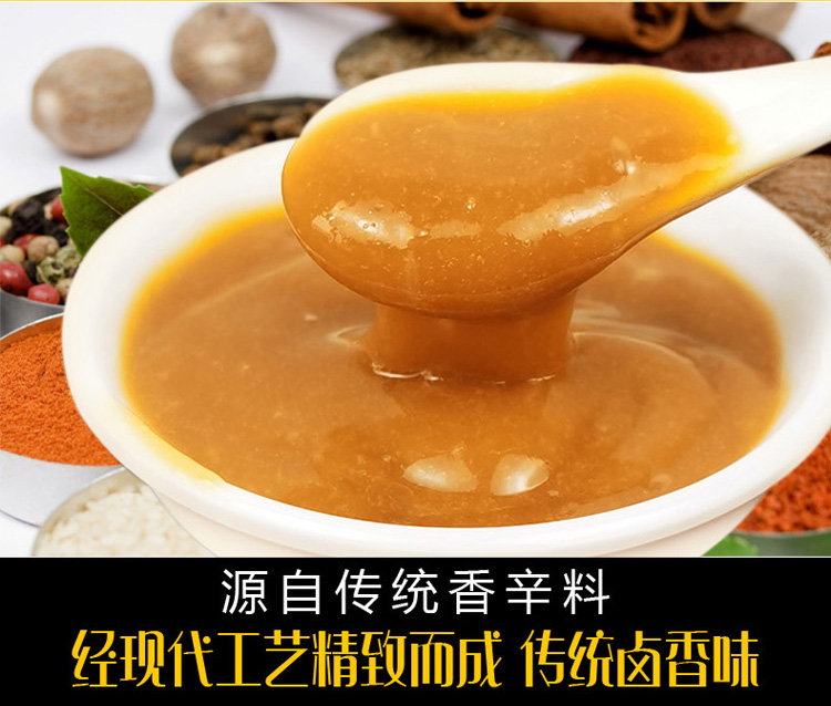 配料:鸡肉提取物、牛肉提取物、酵母抽提物、淀粉、麦芽糊精、食盐、砂糖、味精、香辛料、食品添加剂(呈味核苷酸二钠、食用香精、山梨酸钾)