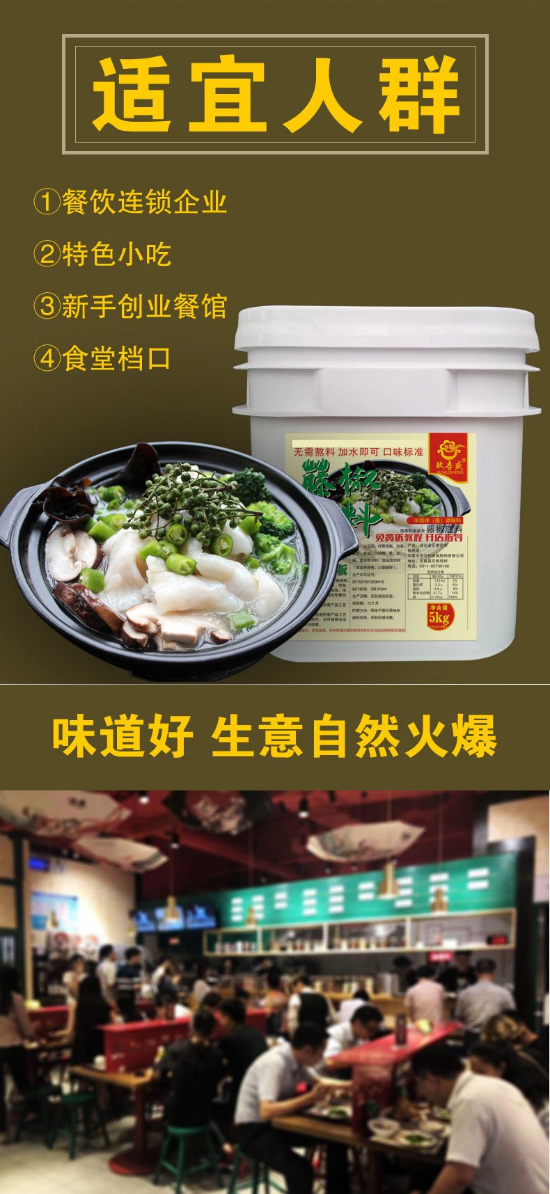 配料:大豆油、鲜青花椒、鸡精调味料、泡姜、豆豉、食盐、白砂糖、葱、姜、蒜、复合香辛料食品添加剂(食品用香精、5'-呈味核苷酸二钠、山梨酸钾)