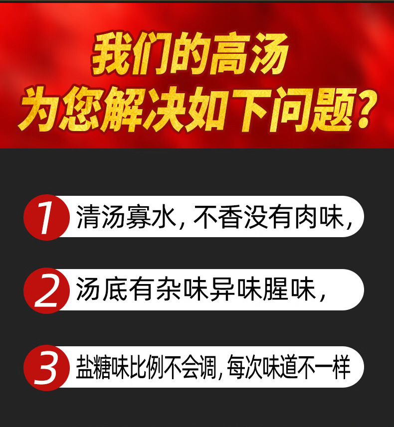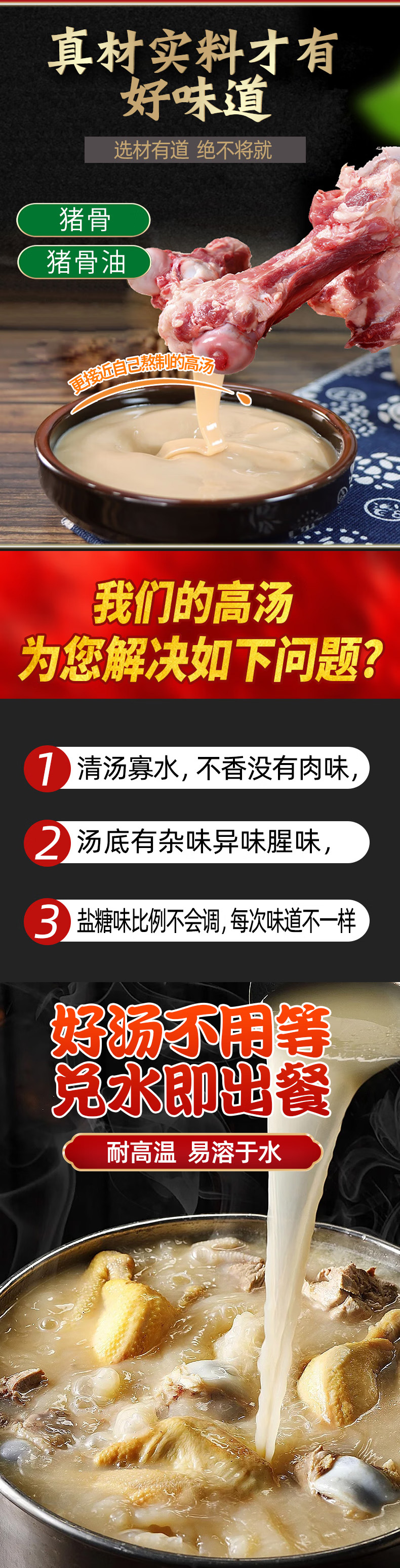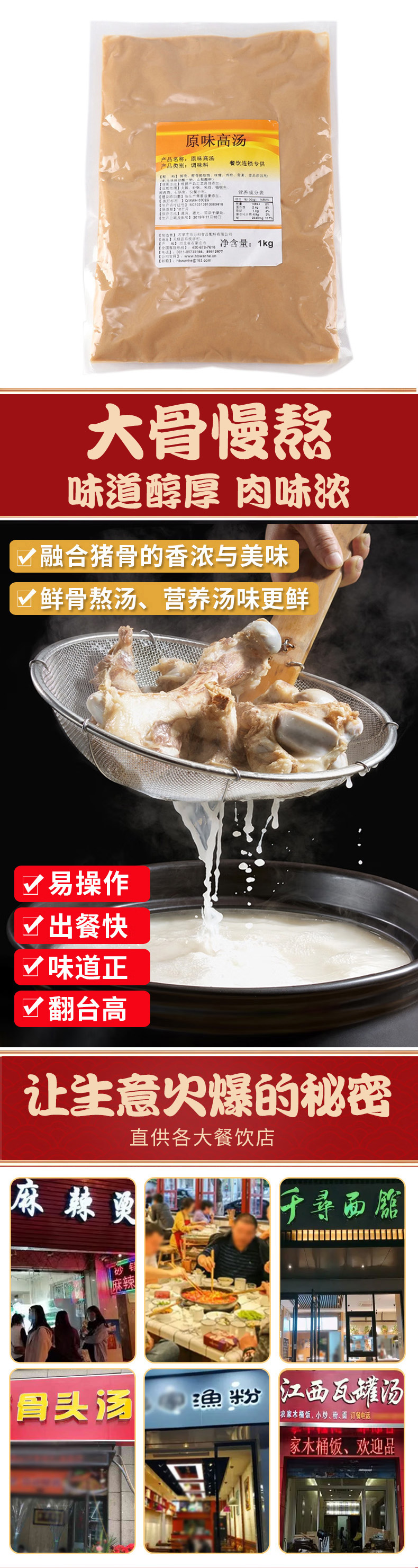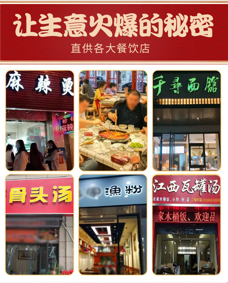 应用范围:营养汤底、麻辣烫连锁店底料供货商、火锅汤料、卤汤、汤粉、米线、砂锅等